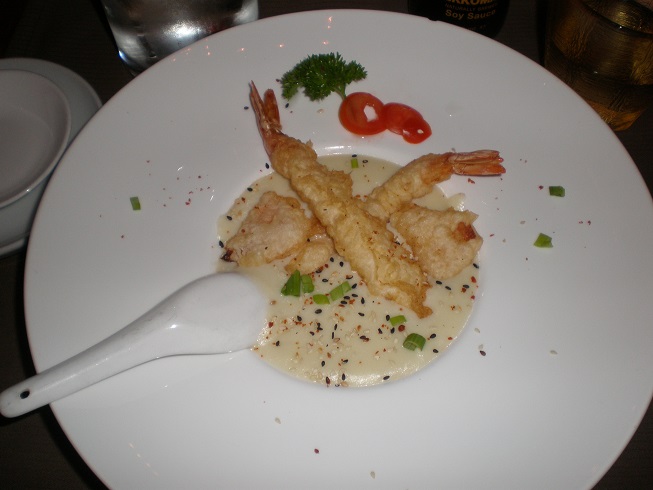 La nostra esperienza tra le specialità del continente asiatico è iniziata con un classico antipasto misto (involtino thay, involtino vietnamita, polpette thay e involtino malaysia), un’esplosione di sapori che merita davvero di essere vissutaa. La cena è proseguita con un piatto che definirlo dai gusti esaltanti credo renda bene l’idea, una cremosa vellutata di patate profumata al tartufo con gamberoni in tempura, il tutto accentuato ulteriormente con spezie sapientemente utilizzate. La mia serata al ‘Perla D’oro’ si è conclusa con un piatto di noodle di riso saltati con verdure e gamberi e semi di sesamo. Non poteva mancare ovviamente una piccola brocca di sakè caldo per terminare nel miglior modo una cena in cui il fulcro principale è la scoperta del mondo asiatico e la sua cultura culinaria. Ringrazio nuovamente il proprietario Sao e tutto il suo staff per la gentilezza, attenzione e disponibilità che mi sono state rivolte e qui di seguito vi mostro una piccola fotogallery della mia squisita cena…..