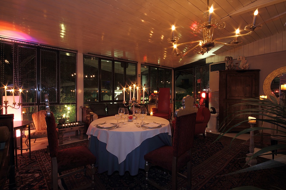 La location si divide in due spazi, uno dedicato alla ‘Gintoneria’ e l’altro riservato al ristorante la cui sala si apre come un piccolo rifugio deluxe, impreziosito da tessuti di broccato, tappeti importanti e arredi che richiamano ambienti imperiali e stile d’epoca.