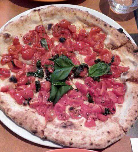 In primis si è iniziata la degustazione con la bruschetta classica (realizzata però con pasta di pizza) e poi non si poteva rinunciare a tre gustose pizze: vegetariana (pomodoro, mozzarella e verdurine miste), positano (pomodoro, mozzarella, prosciutto crudo, rucola e gamberetti) e una semplicemente col prosciutto crudo senza formaggio.