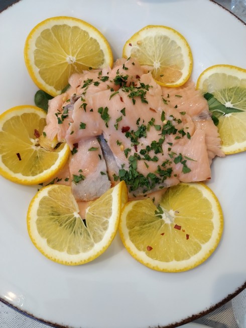 Il locale è ampio e ben distribuito, adatto sia per stare in famiglia che per l’inizio di una serata tra amici. Tra le specialità che mi sono state portate ho apprezzato tantissimo sia il salmone marinato agli agrumi che l’insalata di mare, mentre piccole bruschette al pomodoro e un filo d’olio sono stati la chicchetta di antipasto finale.