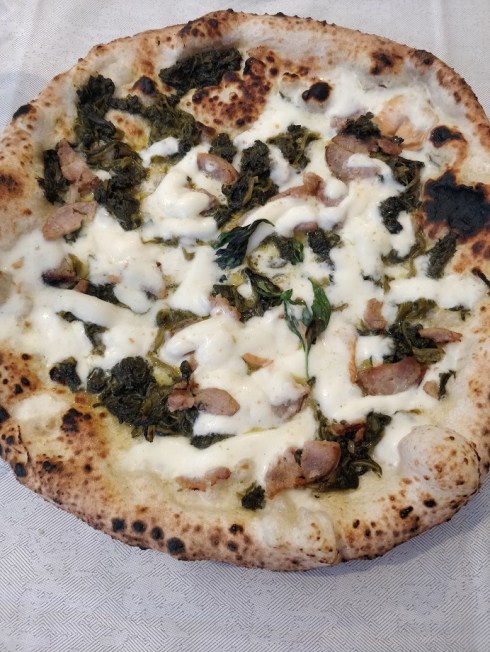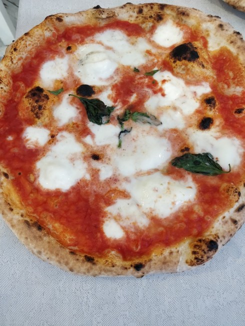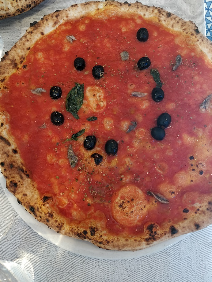 Ovviamente la regina indiscussa non poteva che essere la pizza, in diverse varianti: i miei commensali hanno degustato una con la salsiccia, scamorza e friarielli e l’altra con una deliziosa mozzarella di bufala. La mia scelta invece è ricaduta su una marinara (con pomodoro, olive e acciughine). Pizze con un impasto delicato e gustoso, che sa davvero differenziarsi rispetto alla numerosa concorrenza. Un assaggio di limoncino è stata la giusta e doverosa conclusione di un pasto che ho apprezzato tantissimo.