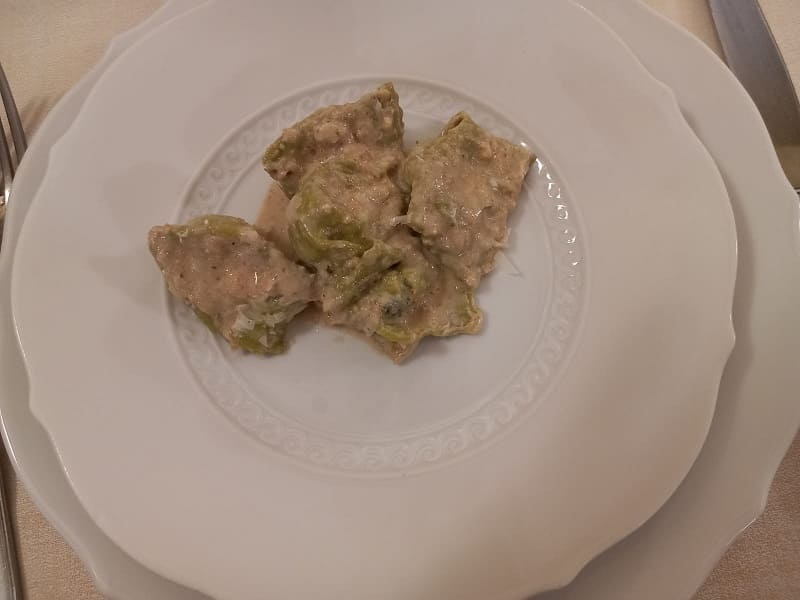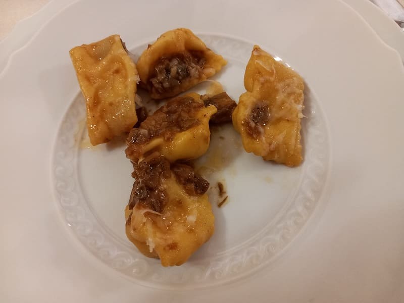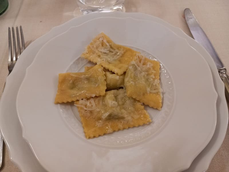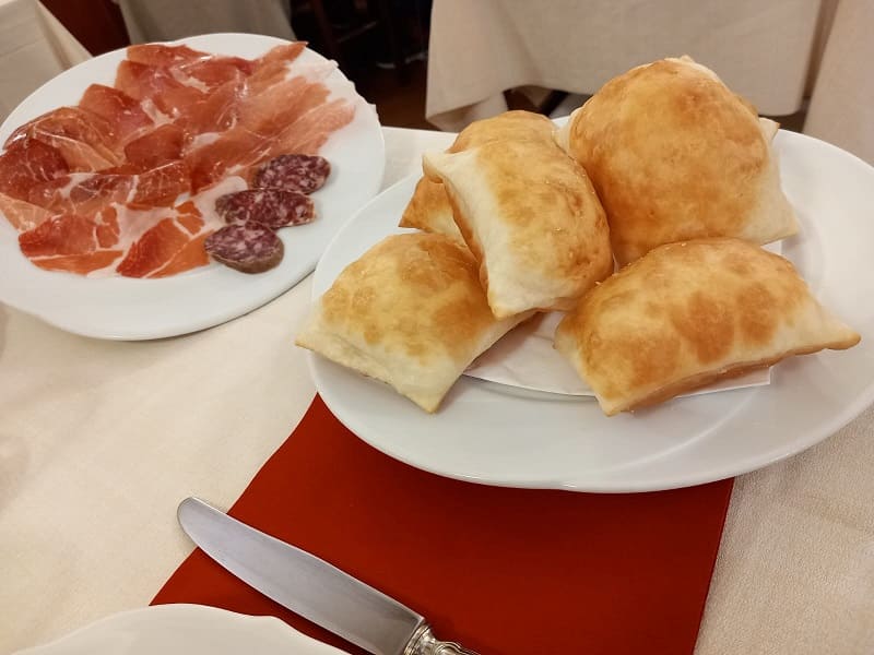 Il must è senza dubbio la torta fritta, accompagnata dal tagliere di salumi (salame, culatello di 36 mesi e spalla cotta calda); in seguito abbiamo optato per il tris di primi (tortelli di ricotta di mucca, agnolotti di patate con funghi porcini e agnolotti verdi con salsa di noci).