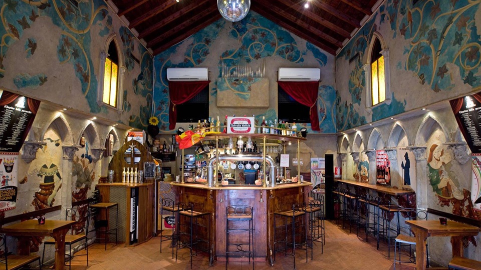 Candele, affreschi alle pareti e un’atmosfera gotica rievocano il luogo in cui ci troviamo e sull’ ‘altare’ bar, al centro, Don Angel è impegnato a ‘celebrare’, preparando con sapienza cocktails e chupito per i suoi ‘fedeli’ .