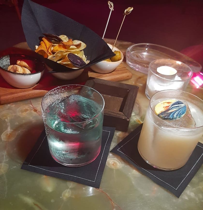 Il locale, che non dà direttamente sulla strada trasportandoti subito in un viaggio ‘fuori’ dalla frenesia della città, accoglie i suoi avventori in uno spazio caratterizzato da tende rosse, luci calde e soffuse ed un’atmosfera intima e rilassata. E’ diviso tra l’area ristorante (conosciuta per la combinazione cena con spettacolo dal vivo) e la zona bar con una veranda arricchita da tendaggi color passione, comode poltrone ed una grande vetrata che ricrea le vibes di un elegante salotto, perfetto per la combo drinks & conversations.