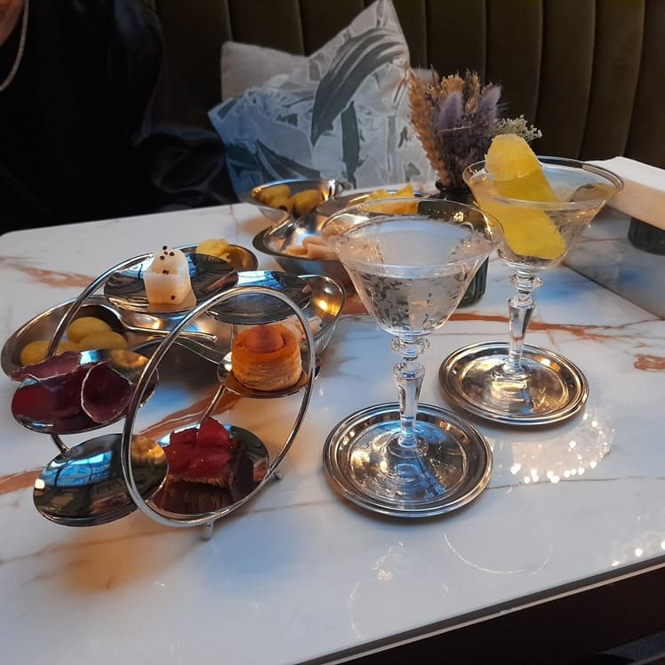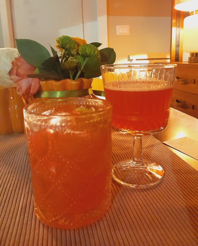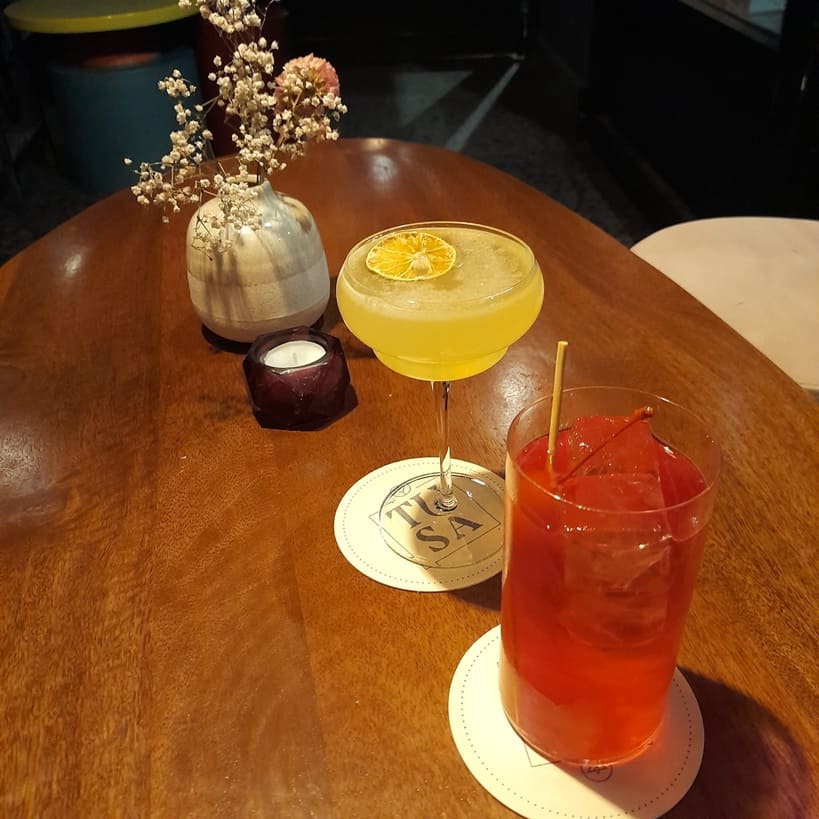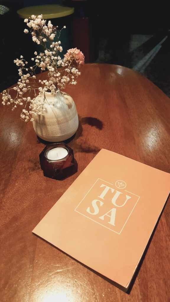 Il locale si mostra come un salotto elegante, dove poter terminare una frenetica giornata di lavoro prendendo un aperitivo o dopocena della drink list studiata nei minimi dettagli. La particolarità di quest’ultima infatti è che omaggia le grandi donne che hanno lasciato il segno nello scenario artistico mondiale. La nostra scelta è ricaduta sul Marilyn Monroe (gin Bombay ai fiori di sambuco, liquore strega, succo fresco di lime, simple syrup e verjus) e Grace Kelly (Tanquerey 0.0 analcolico, Martini vibrante aperitivo analcolico, succo di limone fresco, gelsomino, soda Three Cents ciliegia). Belle vibrazioni per un dopocena o perfetto per un primo appuntamento, vista l’atmosfera calda e romantica che si respira al Tusa.