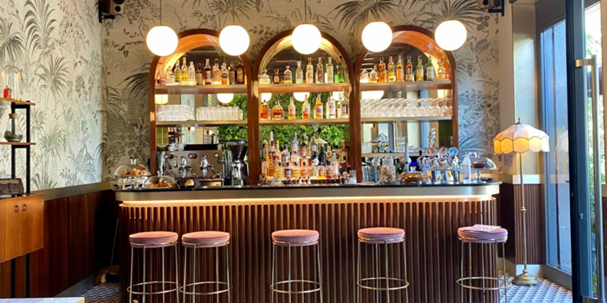 After a journey with wonderful panoramic views of the sea illuminated by the warm light of the setting sun, we arrive in the heart of Nice, the iconic Promenade with its lush vegetation and characteristic blue chairs forming the backdrop as we head to Renée where Polina Kirdohlo, the bar manager, immediately welcomes us with great hospitality.