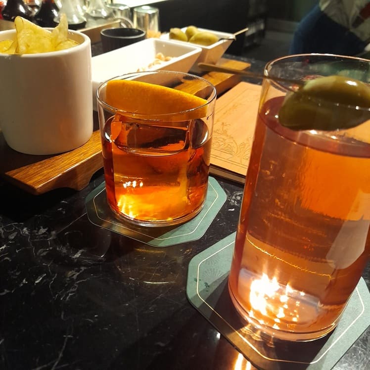 Questa volta abbiamo optato per una rivisitazione del Negroni e un classico Martini Dry, accompagnati da una piccola serie di sfiziosità.