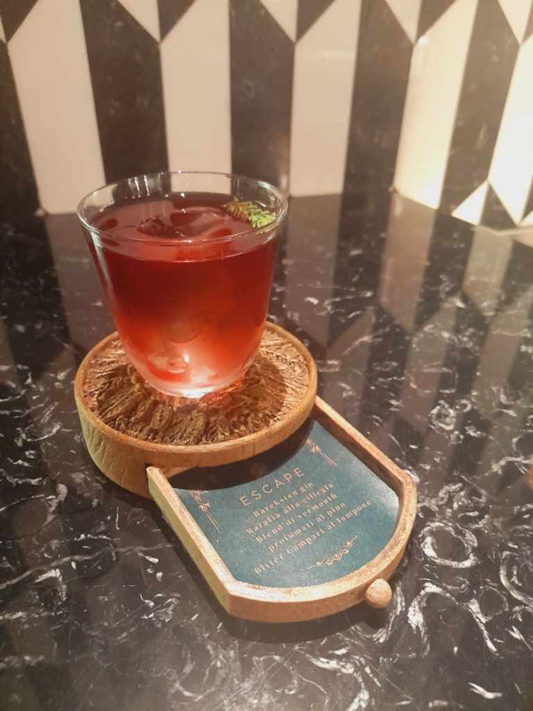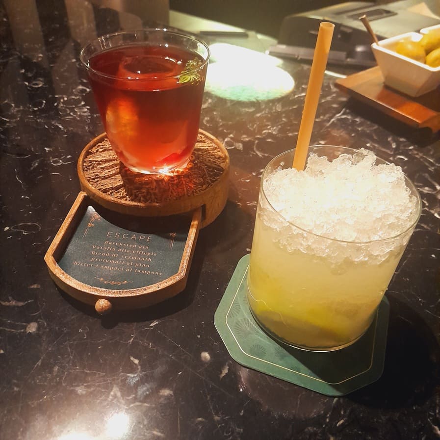 Il Daiquiri di Andrea ti porta direttamente tra le note di Cuba, dando per un momento l’impressione al cliente che lo sta sorseggiando di essere alla famosa ‘Floridita’ di Havana (locale reso noto da Hemingway proprio per il Daiquiri), mentre il Vintage Negroni celebra tutte le origini toscane del drink con un tocco di personalità (Tanquerey Ten, Vermouth storico di Torino Cocchi, Bitter Campari, Barolo chinato Cocchi). Proseguendo il filone tropicale, una Caipirinha di assoluto livello mi ha trasportato direttamente in Brasile e una proposta della signature list ha terminato questo ennesimo piacevole momento, l’Escape (Bareksten gin, Ratafia alla ciliegia, Blend di vermouth profumati al pino e bitter Campari al lampone).